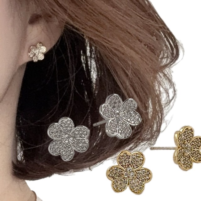 ストーンを敷き詰めたフラワーモチーフのピアス。 上品な輝きで耳元をさりげなく華やかに演出します。 可愛らしさの中に大人っぽさもあり、年齢を問わず取り入れやすいデザインです! 普段使いからきれいめスタイルまで幅広く活躍します。 カラーはシルバーとゴールドの2色展開。 お好みやコーディネートに合わせてお選びいただけます。 素材 合金 サイズ モチーフ 1.1cm×1.1cm ★商品ご購入時の注意点 当店のセレクトアイテムは海外製です。日本製とは異なり多少のキズ、金属表面の凹凸、金具の留のゆるみ等がある場合がございます。 丁寧に検品を行っておりますが、ご理解いただいた上でのご購入をお願いしたします。 一部金属商品にメッキ加工を施しております。 そのため汗、水に弱く水分が付着する可能性がある場合には必ずお外し下さい。またご使用後は柔らかい布で拭いて保管してください。 その他、ご不明な点がございましたらお気軽にお問い合わせください。