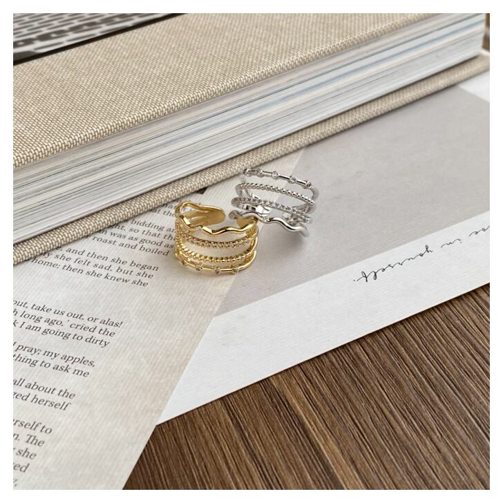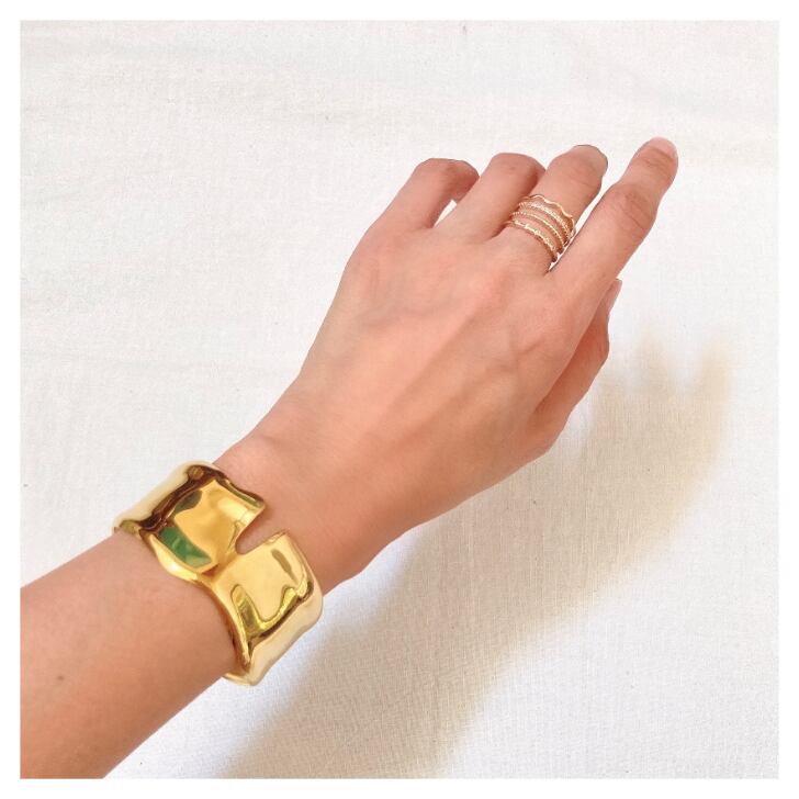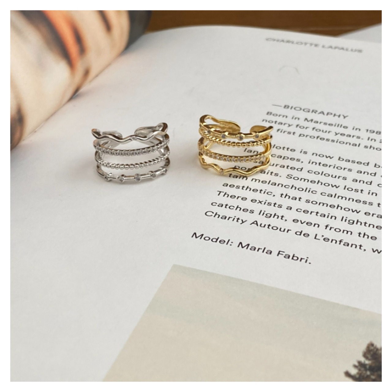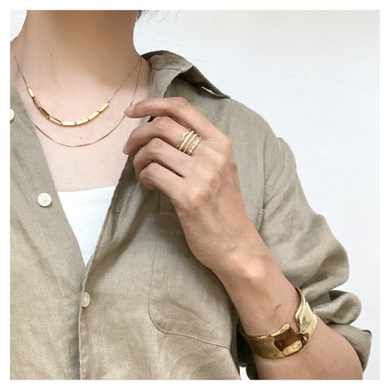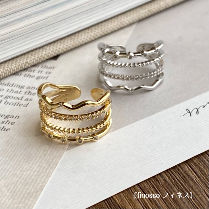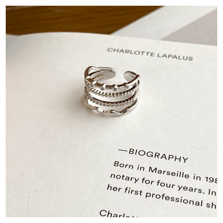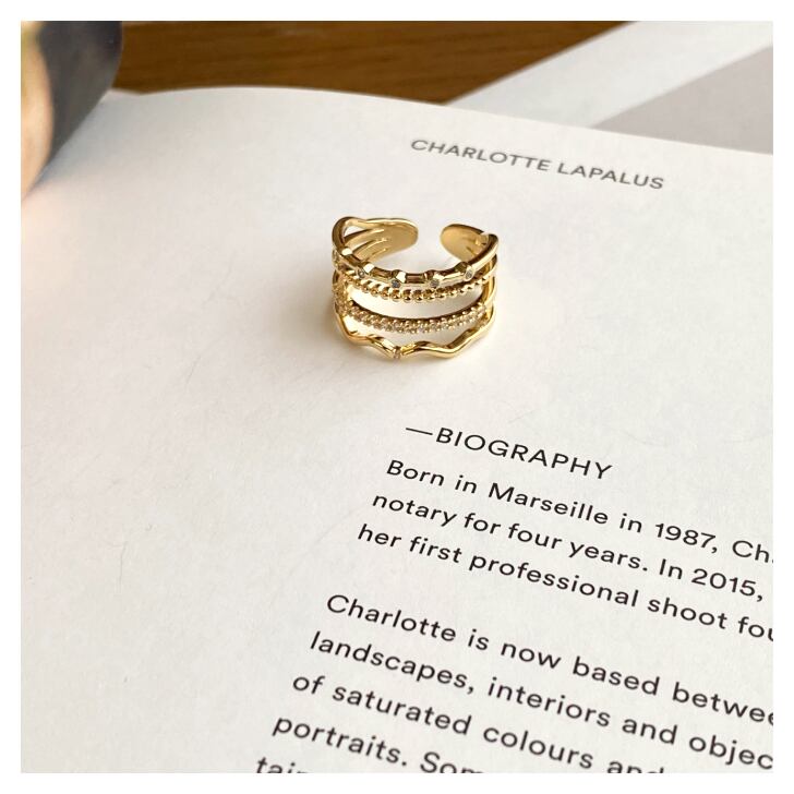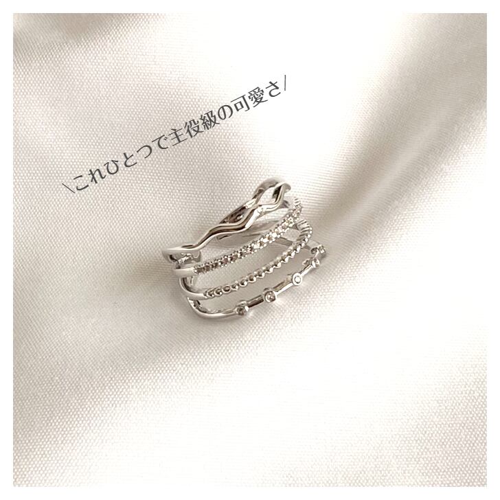 まるで重ね付けしているみたいな、これひとつでこなれ感が出せる4連風のデザインリングです。