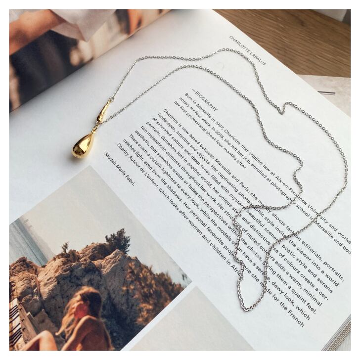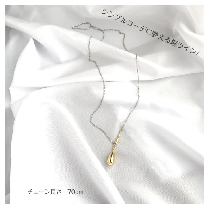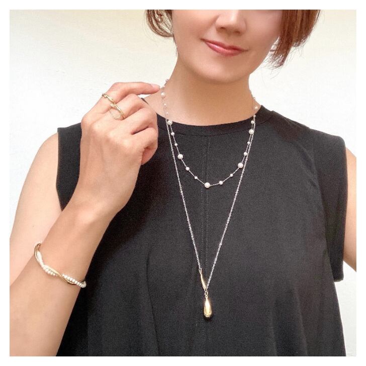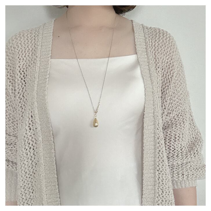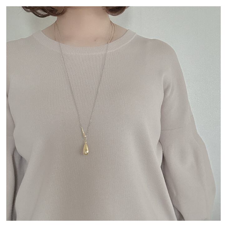 艶やかなゴールドのドロップチャームがゆらりと揺れるロングタイプのネックレスです。