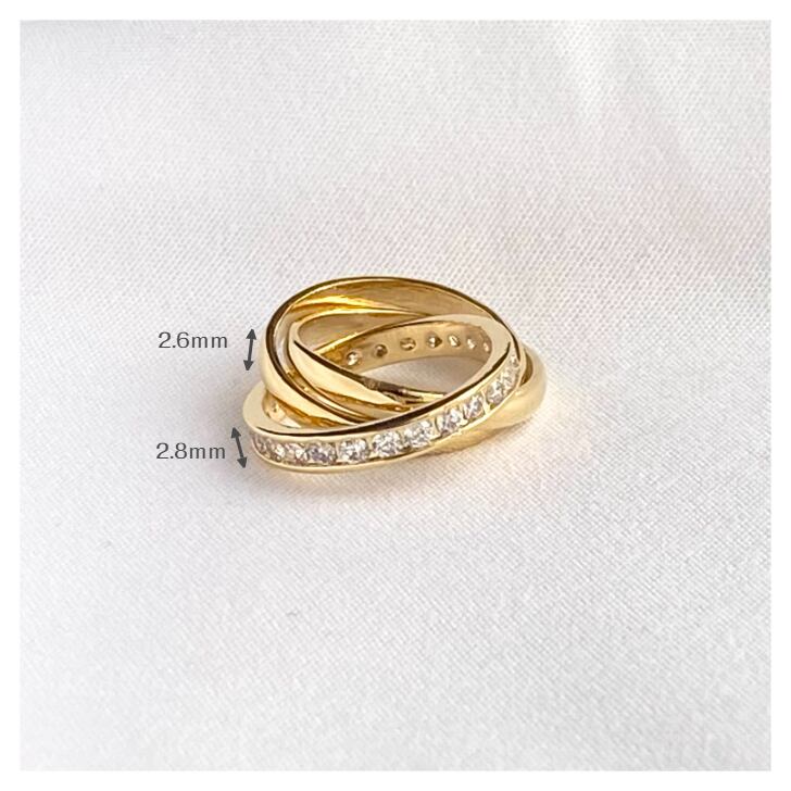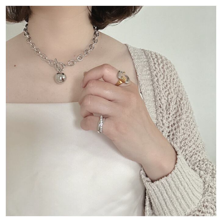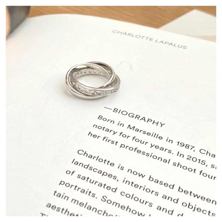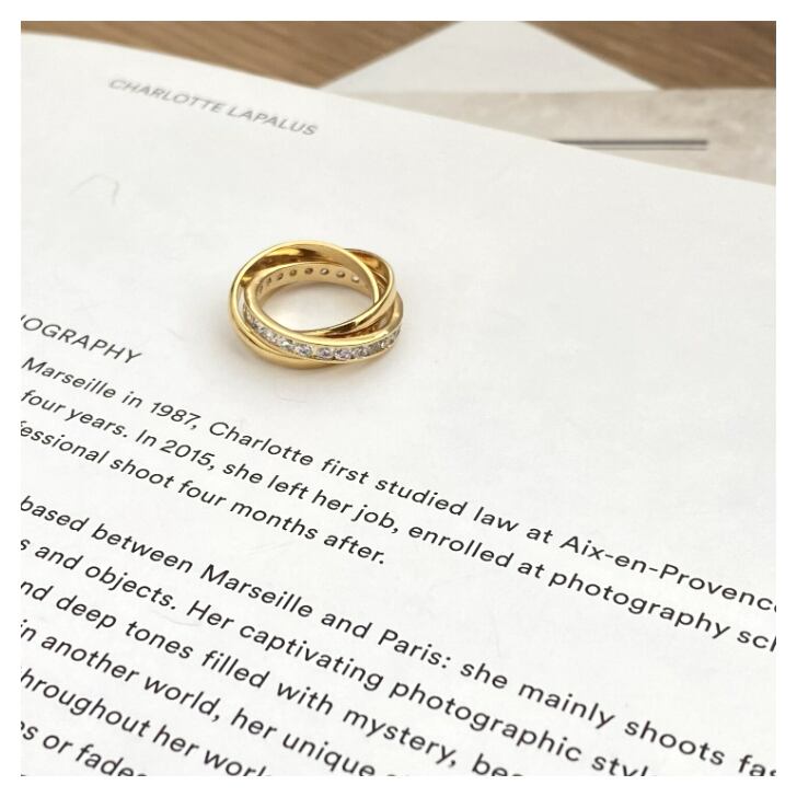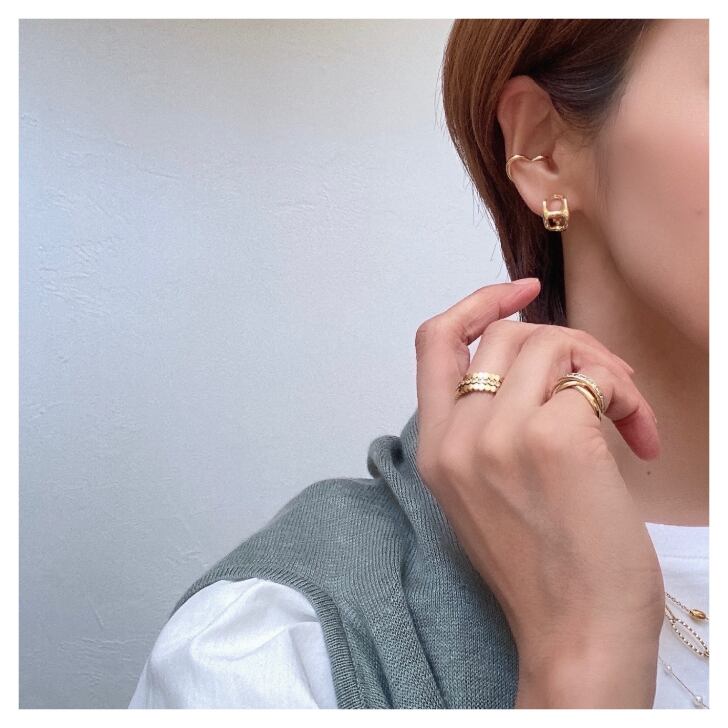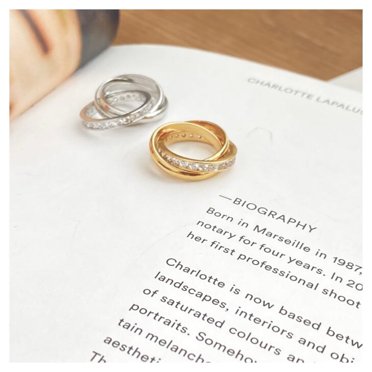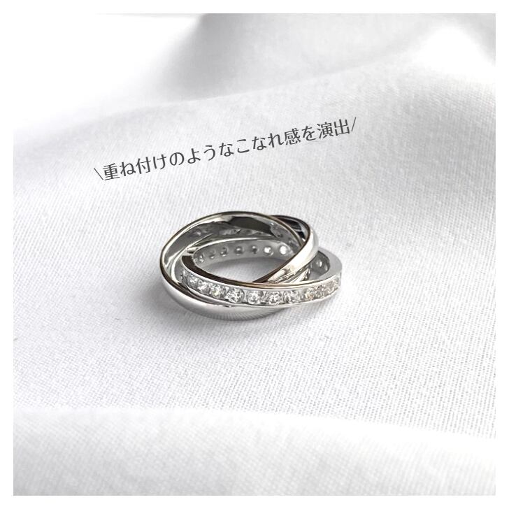 繊細なストーンのきらめきとクロスする立体フォルムが指先を上品に彩ります。