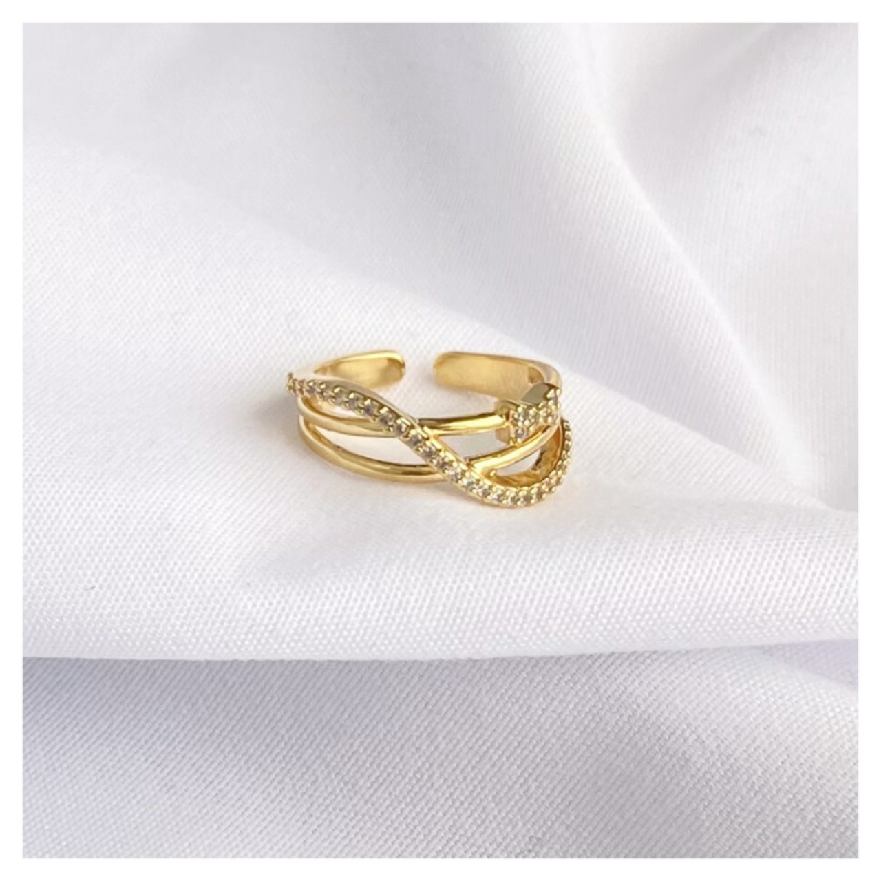 ゆるやかなウェーブラインがやさしく包み込むようなピンキーリング。