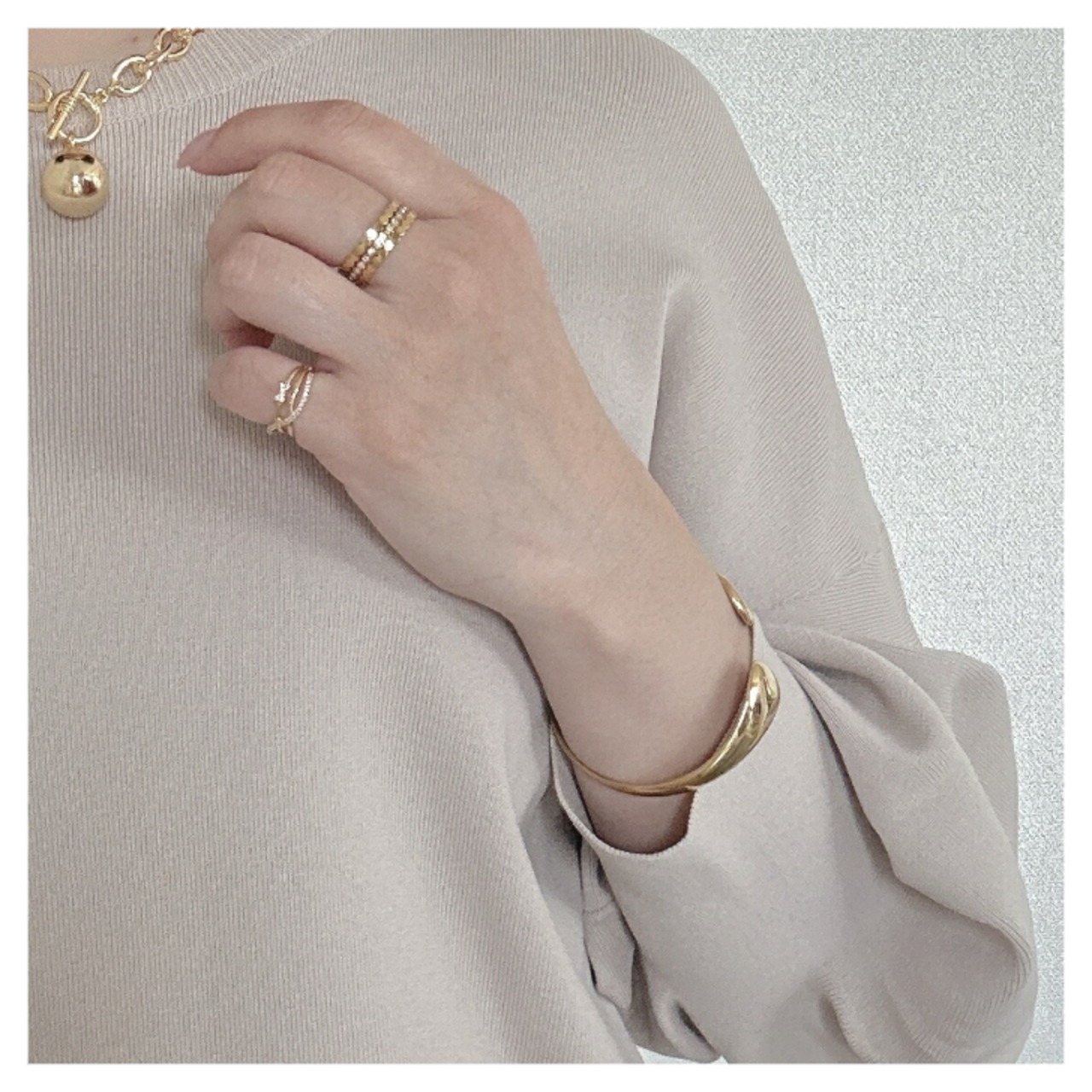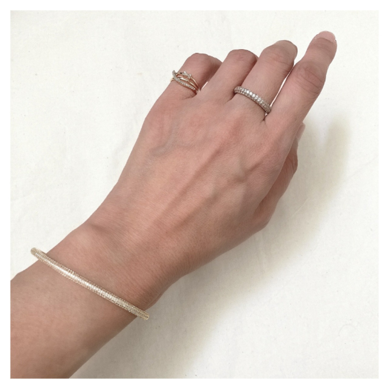 ラインに沿って並ぶストーンの輝きが手元にそっと甘さを添えてくれます。