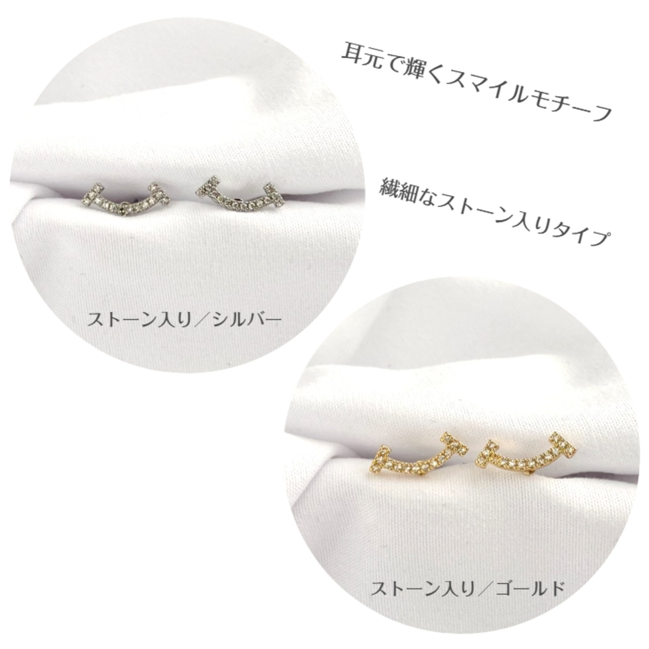 【送料無料!】〔smile スマイルピアス〕ストーン入り