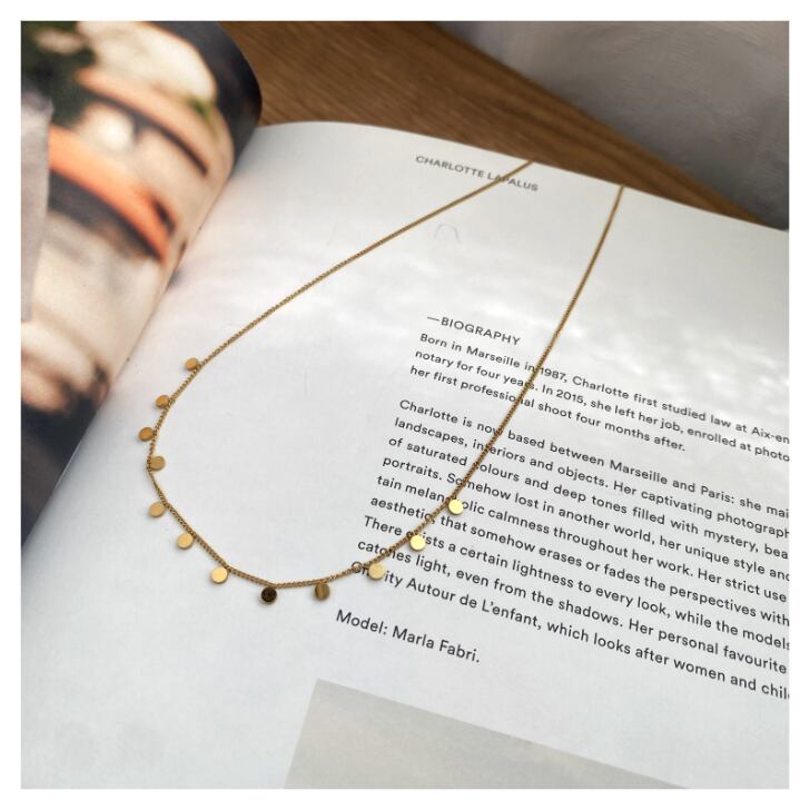 ちいさなコインモチーフをあしらったシンプルで洗練されたデザインのネックレスです。