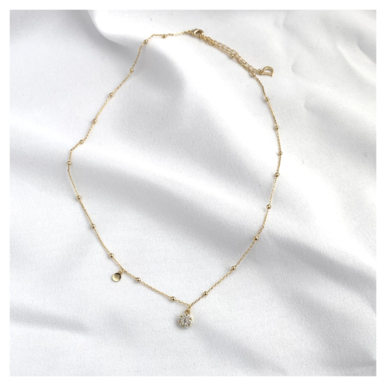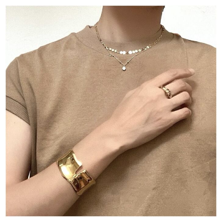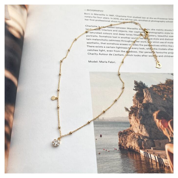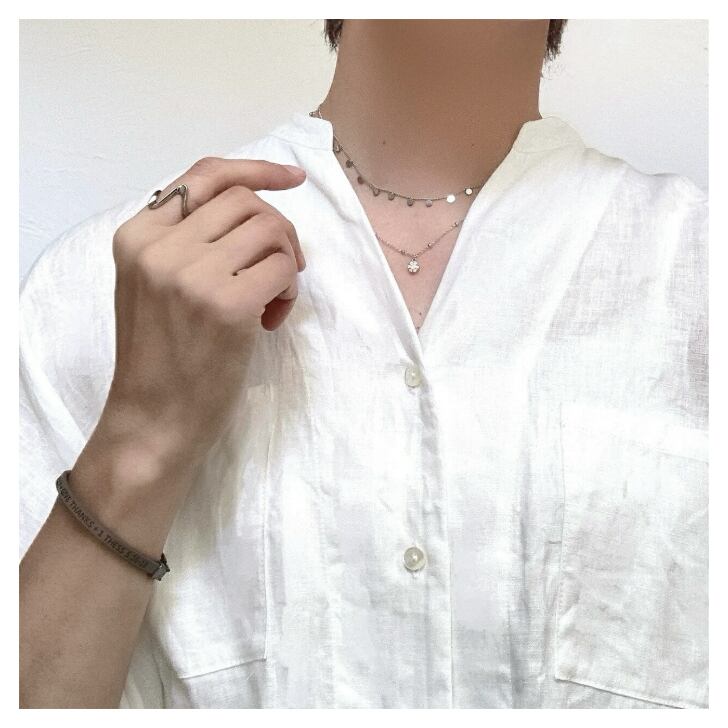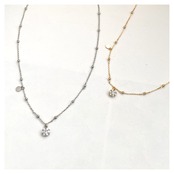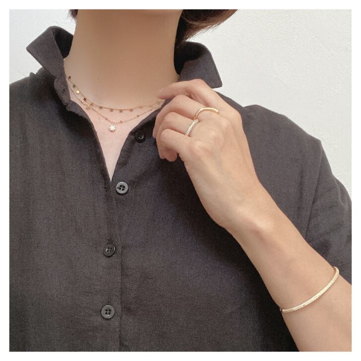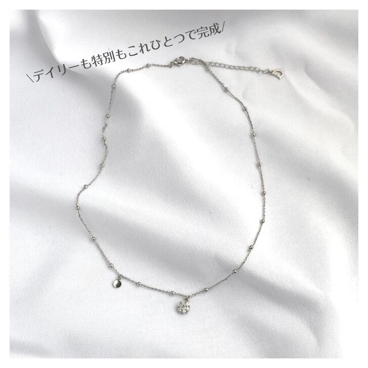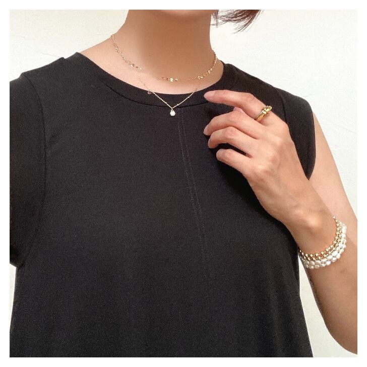 小さなボールをあしらったデザインの華奢なチェーンがほどよいアクセントになり、シンプルコーデにちょっとした華やぎをプラスします。