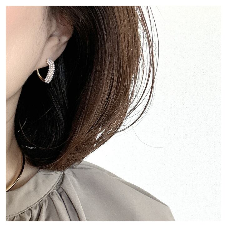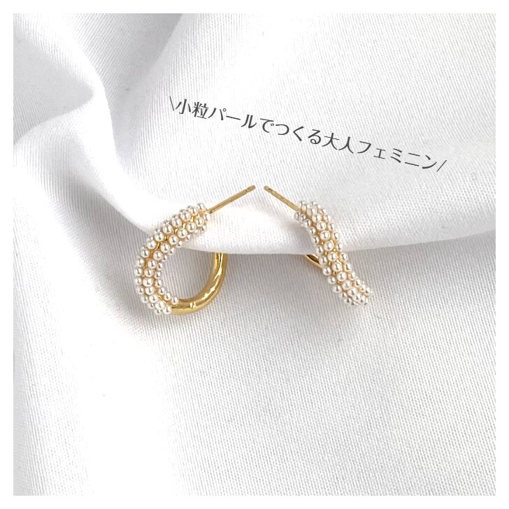 小粒パールを丁寧にあしらった、上品で華やかなピアスです。