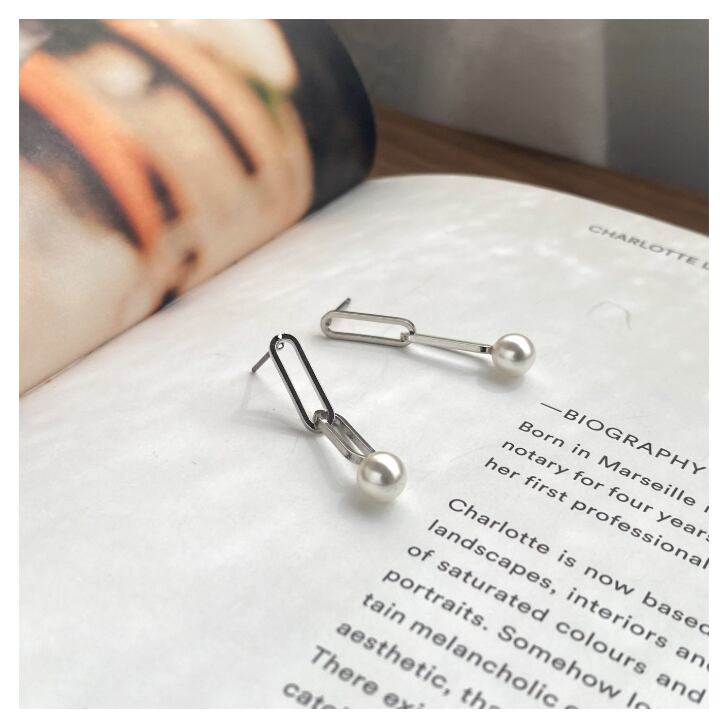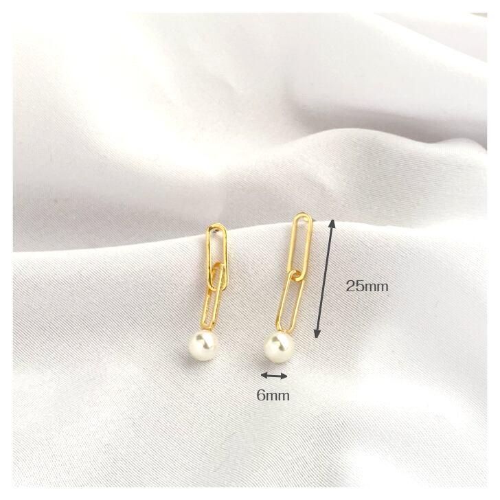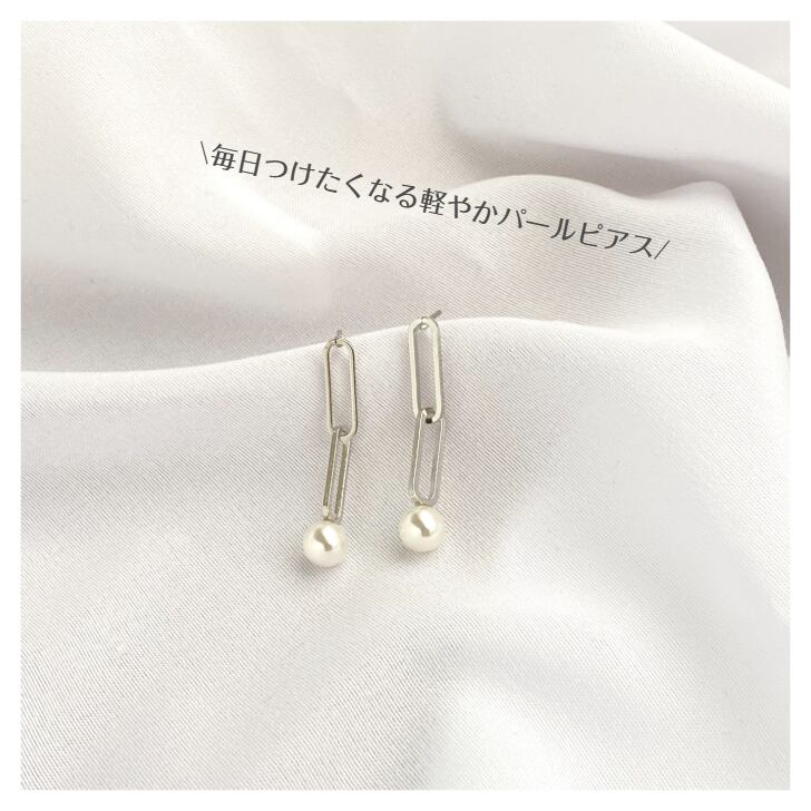 チェーンモチーフにパールを合わせた抜け感たっぷりの大人ピアス。
