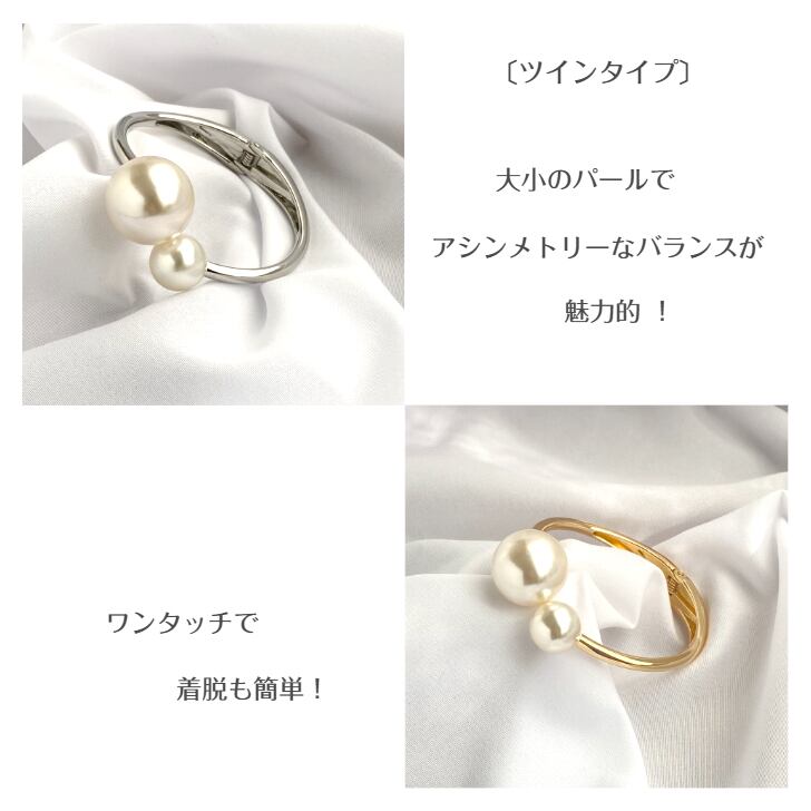 大小のパールが並ぶ〔ツインタイプ〕は、上品で落ち着いた印象に。