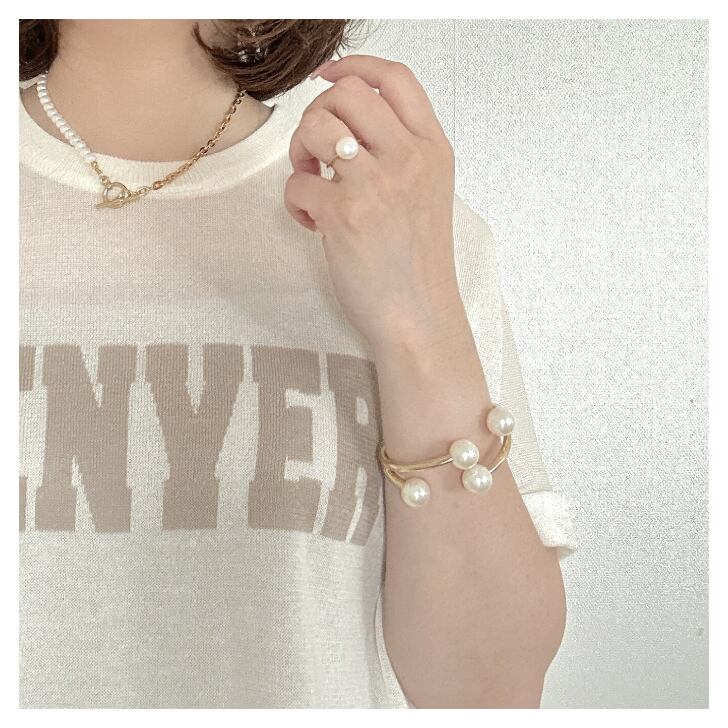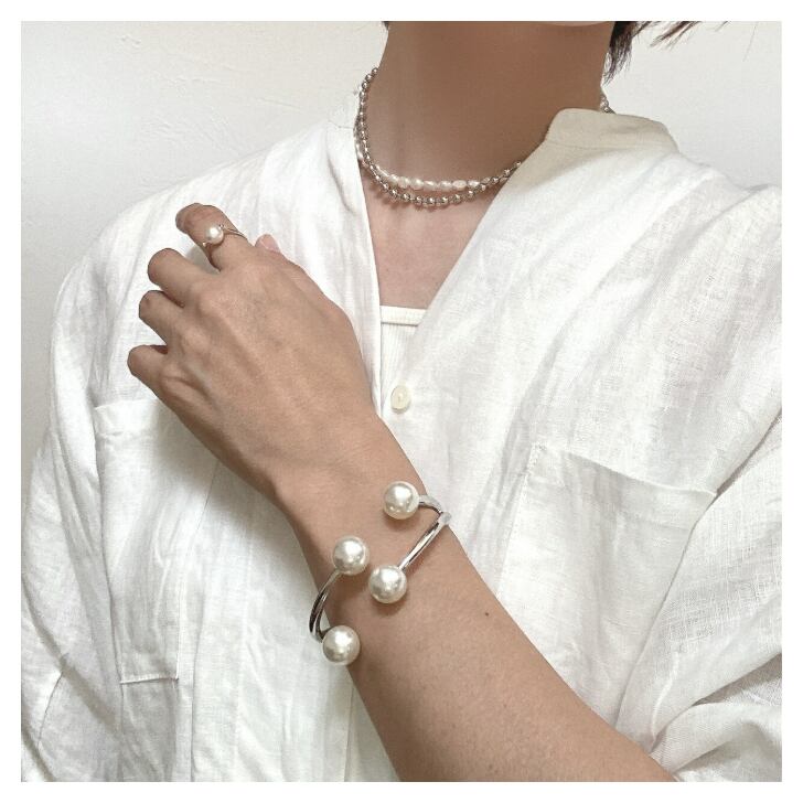 やわらかな艶のパールが手元でやさしく輝くデイリーに使いやすい大人バングル。