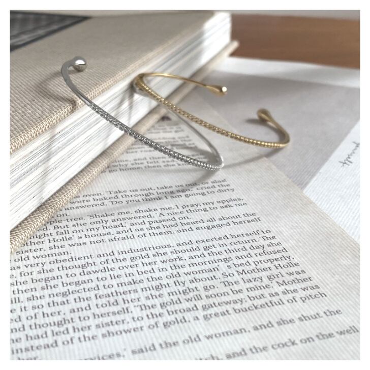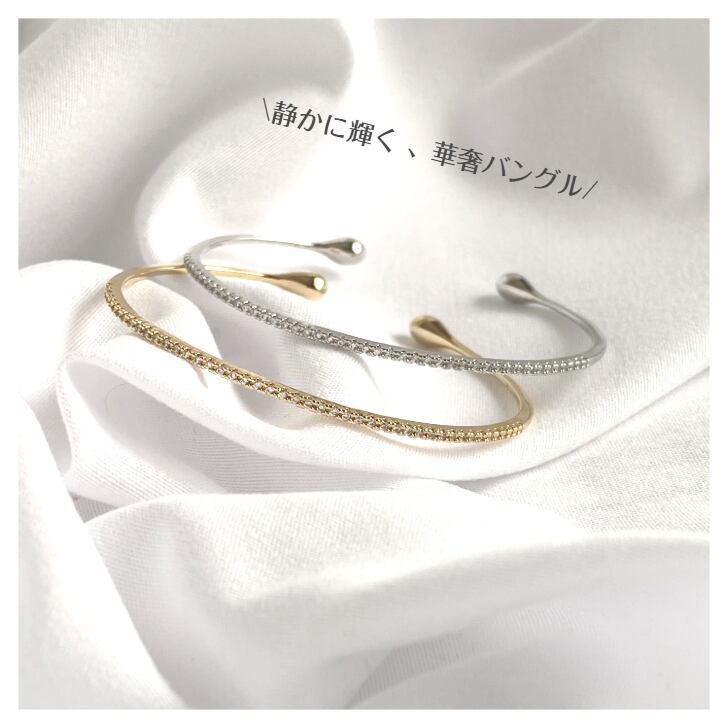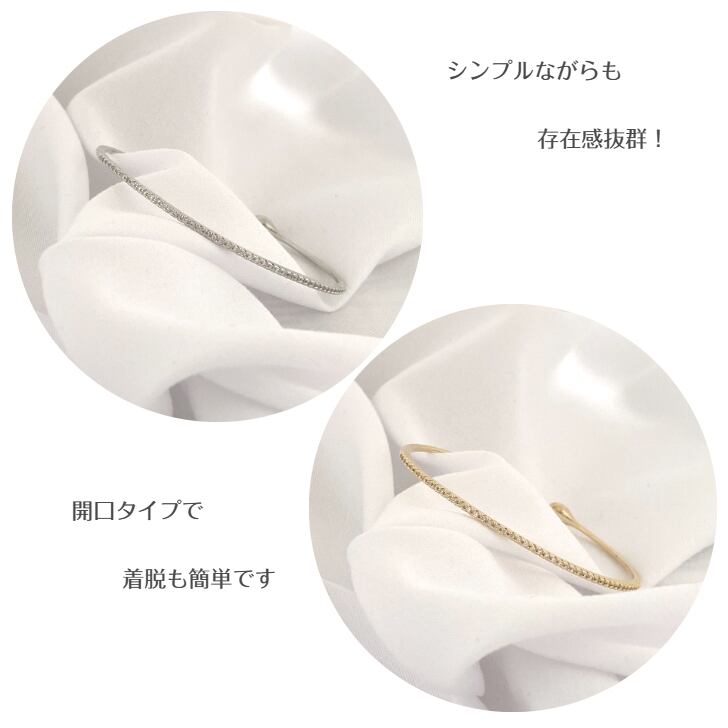 繊細なストーンの輝きが手元を美しく彩るエタニティバングル。