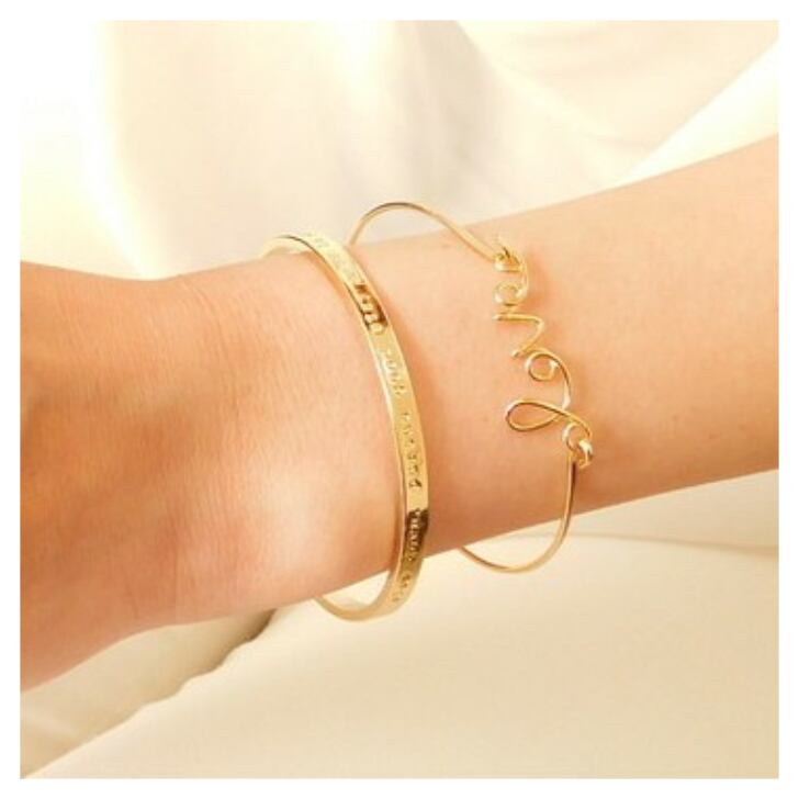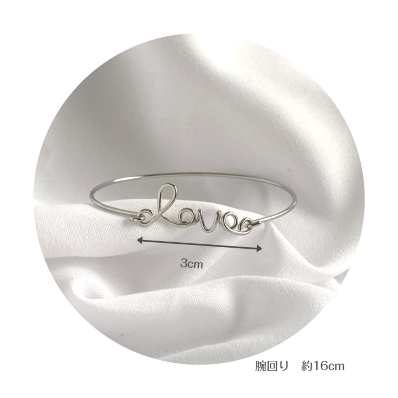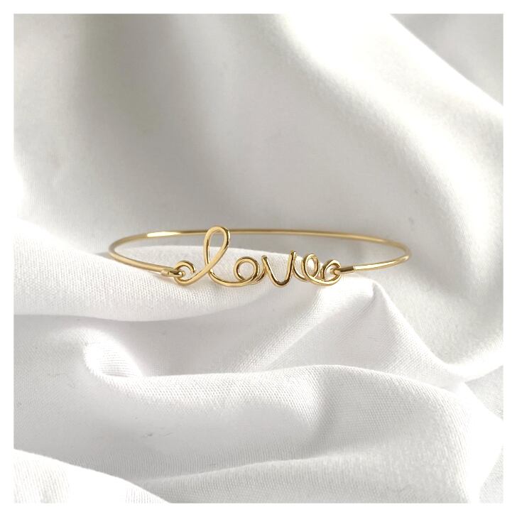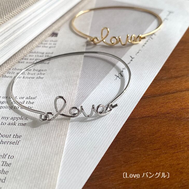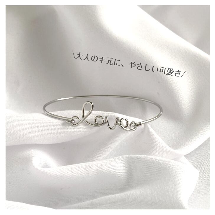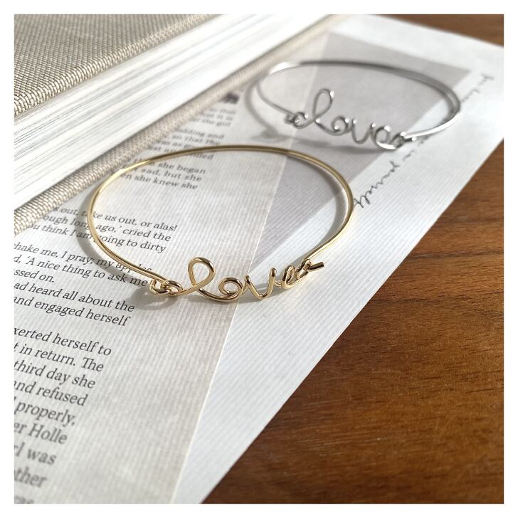 ワイヤーで「Love」の文字を描いた、シンプルで洗練されたバングル。
