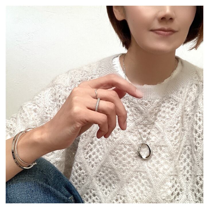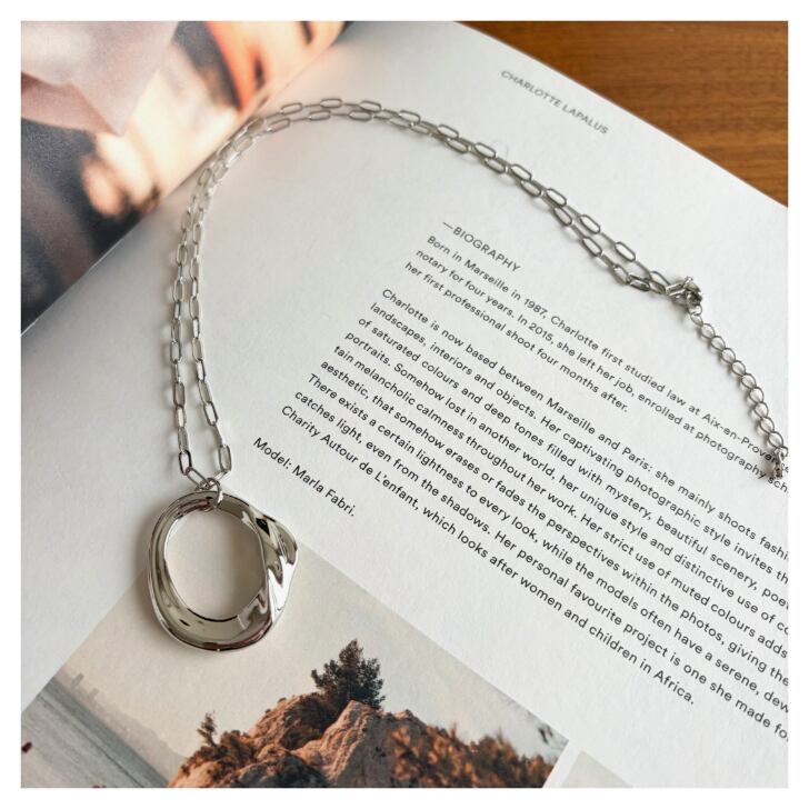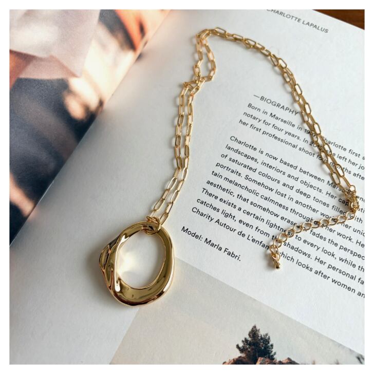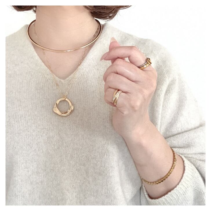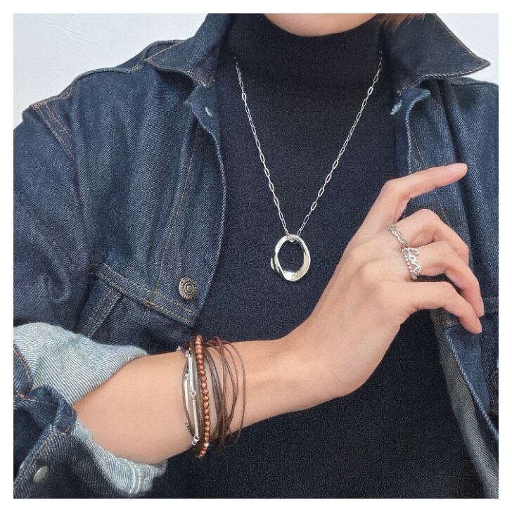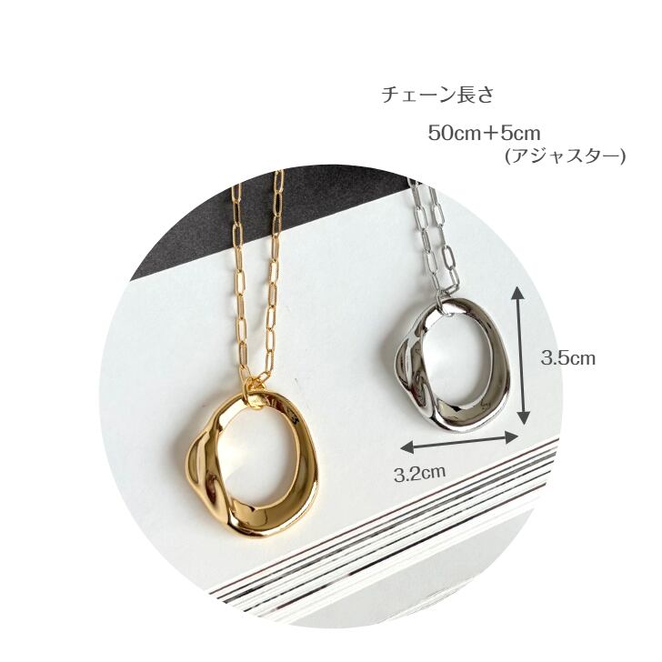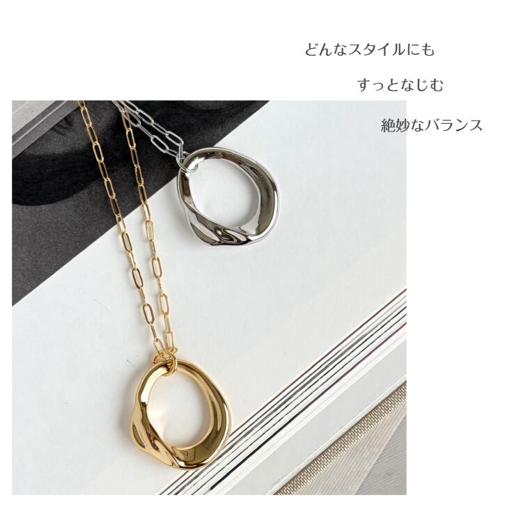 やわらかく歪んだサークルモチーフが、胸元にさりげない存在感を与えるネックレス。