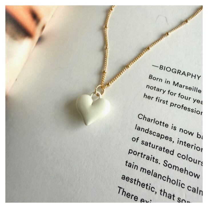 ころんと丸みのあるフォルムが愛らしい、大人のためのハートネックレス。